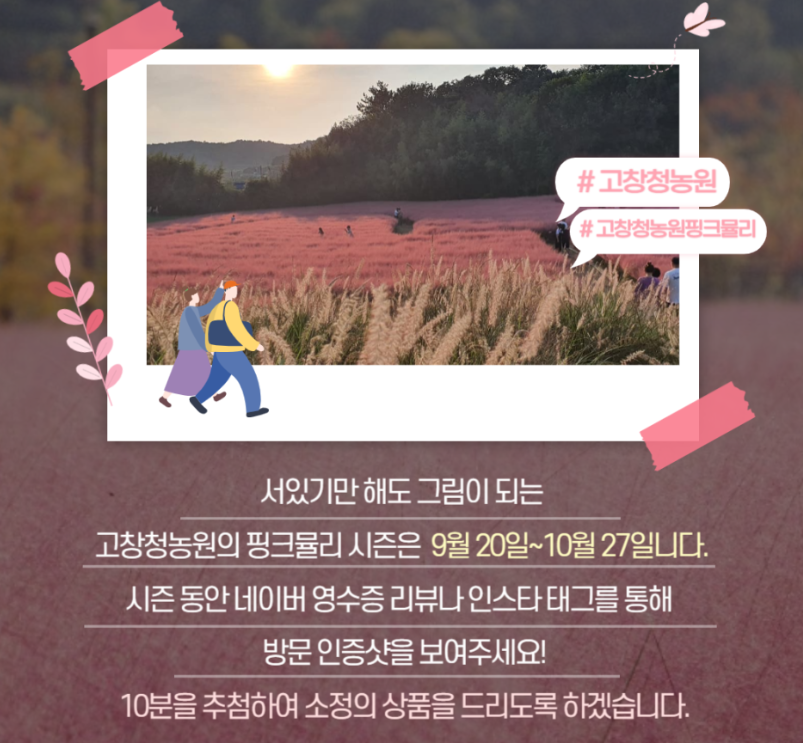 전라북도 고창군 공음면에 위치한 고창청농원에서 가을을 맞아 핑크뮬리시즌을 개최합니다.