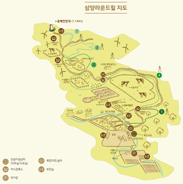 600만 평의 광활한 삼양라운드힐 초지에 살고 있는 동물들을 볼 수 있는 코스로 우리에 갇혀 있는 게 아닌 자유롭게 풍을 뜯고 동물을 볼 수 있는 코스입니다.